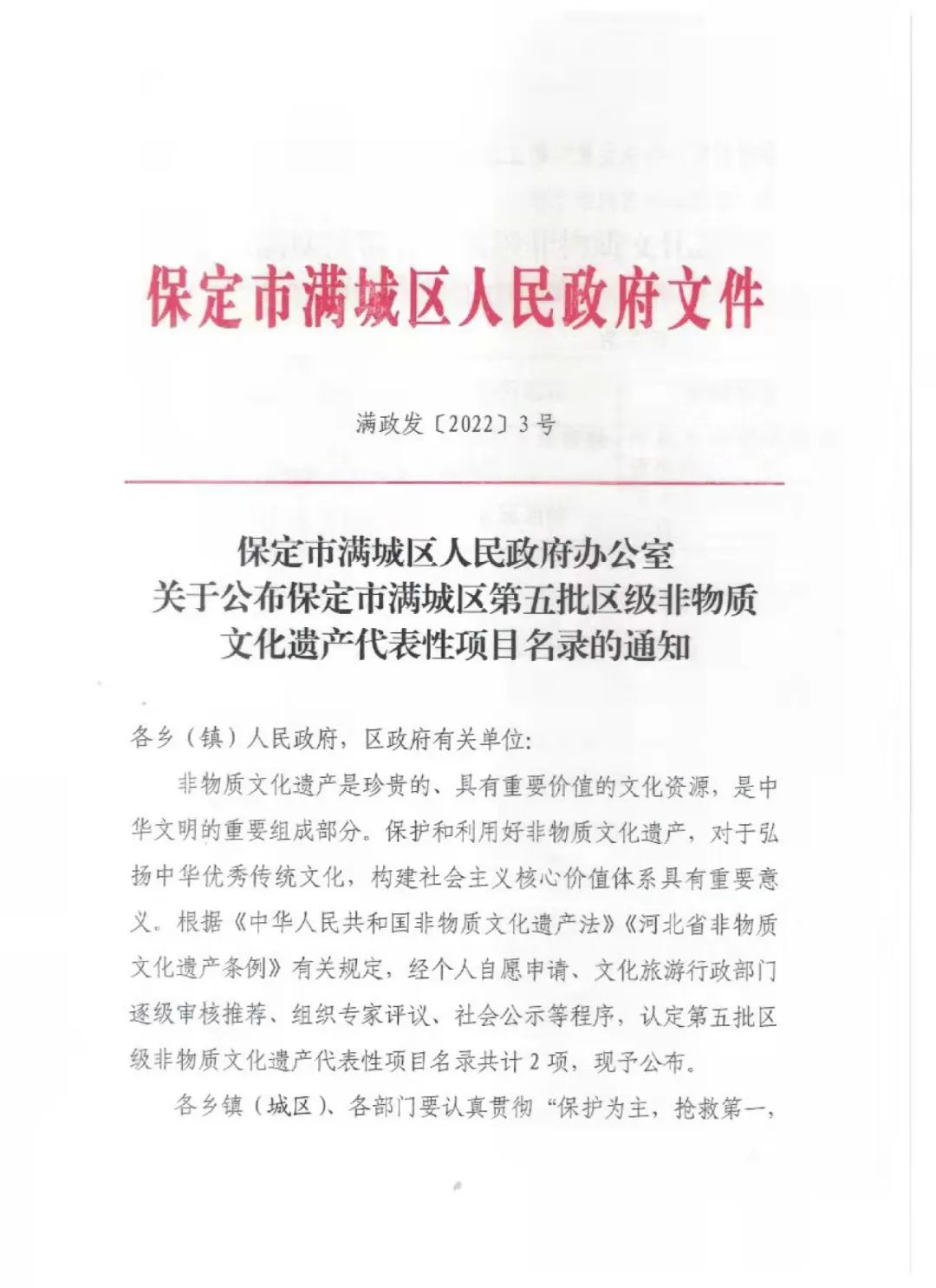 恭喜“盧長永”榮獲滿城區(qū)第三批非物質(zhì)文化遺產(chǎn)項(xiàng)目代表性傳承人