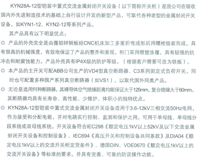 KYN28A-12移開式金屬封閉開關(guān)設備