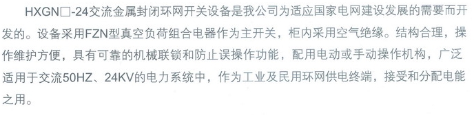 HXGN□-24交流封閉環(huán)網(wǎng)開關(guān)設(shè)備